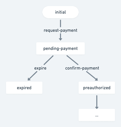 In this model, the transaction transition is done as usual. Your backend polls the events and reacts to transaction transition events by calling the payment gateway API.