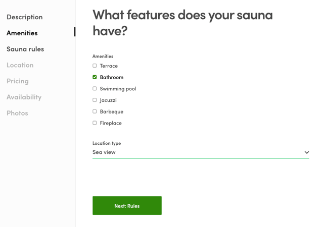 In this tutorial, we focus on the second panel. We want to split CottageDays amenities field into two. Currently, the options for amenities contain both amenities and info about what kind of location type or "view" the cottage has - is it by the lake, sea, forest, etc. To create this new public data field, we'll edit two components: EditListingFeaturesPanel and EditListingFeaturesForm.